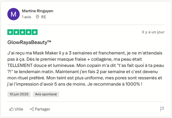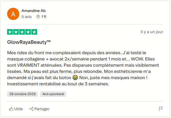 Oui, c’est efficace. Beaucoup de masques industriels contiennent plus de conservateurs que d’actifs. Ici, tu appliques des ingrédients frais riches en vitamines + collagène, donc ta peau réagit immédiatement. Résultat visible dès les premières utilisations.